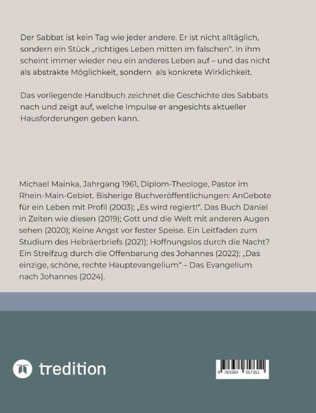 Der Sabbat ist immer wieder neu entdeckt und entfaltet worden - bereits in biblischen Zeiten. Das vorliegende Handbuch zeichnet die Geschichte des Sabbats bis in unsere heutige Zeit nach und zeigt auf, welche Impulse er angesichts aktueller Hausforderungen geben kann. Es enthält und kommentiert alle einschlägigen Texte. Daher kann man es auch als eine Art Nachschlagewerk nutzen. Wer es aber von Anfang bis Ende durcharbeitet, wird so sein Gespür dafür schärfen, wie die Botschaft des Sabbats immer wieder neu wirksam geworden ist und welche Bedeutung sie in unserer heutigen Zeit hat.