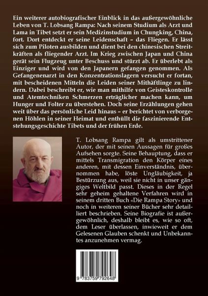 Ein weiterer autobiografischer Einblick in das aussergewöhnliche Leben von T. Lobsang Rampa: Nach seinem Studium als Arzt und Lama in Tibet setzt er sein Medizinstudium in Chungking, China, fort. Dort entdeckt er seine Leidenschaft - das Fliegen. Er lässt sich zum Piloten ausbilden und dient bei den chinesischen Streitkräften als fliegender Arzt. Im Krieg zwischen Japan und China gerät sein Flugzeug unter Beschuss und stürzt ab. Er überlebt als Einziger und wird von den Japanern gefangen genommen. Als Gefangenenarzt in den Konzentrationslagern versucht er fortan, mit bescheidenen Mitteln die Leiden seiner Mithäftlinge zu lindern. Dabei beschreibt er, wie man mithilfe von Geisteskontrolle und Atemtechniken Schmerzen erträglicher machen kann, um Hunger und Folter zu überstehen. Doch seine Erzählungen gehen weit über das persönliche Leid hinaus - er berichtet von verborgenen Höhlen in seiner Heimat und enthüllt die faszinierende Entstehungsgeschichte Tibets und der frühen Erde.