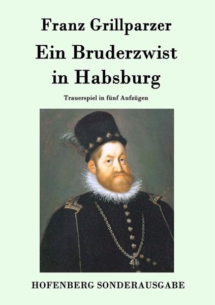 Franz Grillparzer: Ein Bruderzwist in Habsburg. Trauerspiel in fünf Aufzügen Entstanden zwischen 1825 und 1848. Erstdruck: Stuttgart (Cotta) 1872. Uraufführung am 24. 9. 1872 in Wien. Vollständige Neuausgabe mit einer Biographie des Autors. Herausgegeben von Karl-Maria Guth. Berlin 2015, 2. Auflage. Textgrundlage ist die Ausgabe: Franz Grillparzer: Sämtliche Werke. Ausgewählte Briefe, Gespräche, Berichte. Herausgegeben von Peter Frank und Karl Pörnbacher, München: Hanser, [1960¿1965]. Die Paginierung obiger Ausgabe wird in dieser Neuausgabe als Marginalie zeilengenau mitgeführt. Umschlaggestaltung von Thomas Schultz-Overhage unter Verwendung des Bildes: Joseph Heintz d. Ä., Rudolf II., 1594. Gesetzt aus Minion Pro, 11 pt.