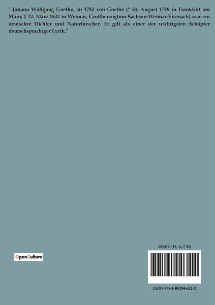 Johann Wolfgang Goethe, ab 1782 von Goethe (* 28. August 1749 in Frankfurt am Main; ¿ 22. März 1832 in Weimar, Großherzogtum Sachsen-Weimar-Eisenach), war ein deutscher Dichter und Naturforscher. Er gilt als einer der bedeutendsten Schöpfer deutschsprachiger Dichtung. Goethe stammte aus einer angesehenen bürgerlichen Familie; sein Großvater mütterlicherseits war als Stadtschultheiß höchster Justizbeamter der Stadt Frankfurt, sein Vater Doktor der Rechte und Kaiserlicher Rat. Er und seine Schwester Cornelia erfuhren eine aufwendige Ausbildung durch Hauslehrer. Dem Wunsch seines Vaters folgend, studierte Goethe in Leipzig und Straßburg Rechtswissenschaft und war danach als Advokat in Wetzlar und Frankfurt tätig. Gleichzeitig folgte er seiner Neigung zur Dichtkunst. Die ersten Anerkennungen in der Welt der Literatur erzielte er 1773 mit dem Drama Götz von Berlichingen, das ihm nationalen Erfolg eintrug, und 1774 mit dem Briefroman Die Leiden des jungen Werthers, dem er sogar europäischen Erfolg verdankte. Beide Werke sind der literarischen Strömung des Sturm und Drang (1765 bis 1785) zuzuordnen. Als 26-Jähriger wurde er an den Hof von Weimar eingeladen, wo er sich schließlich für den Rest seines Lebens niederließ. Er bekleidete dort als Freund und Minister des Herzogs Carl August politische und administrative Ämter und leitete ein Vierteljahrhundert das Weimarer Hoftheater. Die amtliche Tätigkeit mit der Vernachlässigung seiner schöpferischen Fähigkeiten löste nach dem ersten Weimarer Jahrzehnt eine persönliche Krise aus, der sich Goethe durch die Flucht nach Italien entzog. Die Italienreise von September 1786 bis Mai 1788 empfand er wie eine "Wiedergeburt". Ihr verdankte er die Vollendung wichtiger Werke wie Iphigenie auf Tauris (1787), Egmont (1788) und Torquato Tasso (1790).