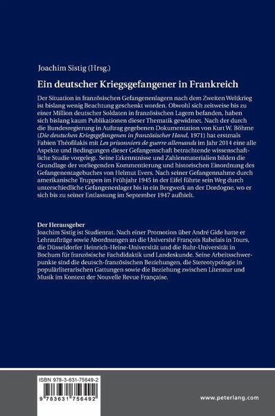 Der Situation in französischen Gefangenenlagern nach dem Zweiten Weltkrieg ist bislang wenig Beachtung geschenkt worden. Obwohl sich zeitweise bis zu einer Million deutscher Soldaten in französischen Lagern befanden, haben sich bislang kaum Publikationen dieser Thematik gewidmet. Nach der durch die Bundesregierung in Auftrag gegebenen Dokumentation von Kurt W. Böhme («Die deutschen Kriegsgefangenen in französischer Hand», 1971) hat erstmals Fabien Théofilakis mit «Les prisonniers de guerre allemands» im Jahr 2014 eine alle Aspekte und Bedingungen dieser Gefangenschaft betrachtende wissenschaftliche Studie vorgelegt. Seine Erkenntnisse und Zahlenmaterialien bilden die Grundlage der vorliegenden Kommentierung und historischen Einordnung des Gefangenentagebuches von Helmut Evers. Nach seiner Gefangennahme durch amerikanische Truppen im Frühjahr 1945 in der Eifel führte sein Weg durch unterschiedliche Gefangenenlager bis in ein Bergwerk an der Dordogne, wo er sich bis zu seiner Entlassung im September 1947 aufhielt.