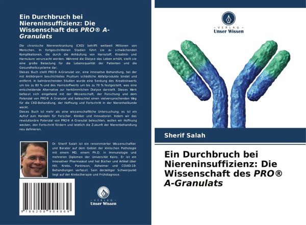 Die chronische Nierenerkrankung (CKD) betrifft weltweit Millionen von Menschen. In fortgeschrittenen Stadien führt sie zu schwächenden Komplikationen, die durch die Anhäufung von Harnstoff, Kreatinin und Harnsäure verursacht werden. Während die Dialyse das Leben erhält, stellt sie eine große Belastung für die Lebensqualität der Patienten und die Gesundheitssysteme dar.Dieses Buch stellt PRO® A-Granulat vor, eine innovative Behandlung, bei der mit Antikörpern beschichtetes Psyllium schädliche Abfallprodukte bindet und entfernt. In bahnbrechenden Studien wurde eine Senkung des Kreatininwerts um bis zu 80 % und des Harnstoffwerts um bis zu 70 % festgestellt, was eine entscheidende Alternative zur herkömmlichen Dialyse darstellt. Dieses Werk befasst sich eingehend mit der Wissenschaft, der Forschung und dem Potenzial von PRO® A Granulat und beleuchtet einen vielversprechenden Weg für die CKD-Behandlung, der Hoffnung und Fortschritt in der Nierenheilkunde weckt.Dieses Buch ist mehr als eine wissenschaftliche Untersuchung; es ist ein Aufruf zum Handeln für Forscher, Kliniker und Innovatoren. Indem wir das revolutionäre Potenzial von PRO® A Granulat beleuchten, wollen wir Hoffnung wecken, den Fortschritt fördern und letztlich die Zukunft der Nierenbehandlung neu definieren.