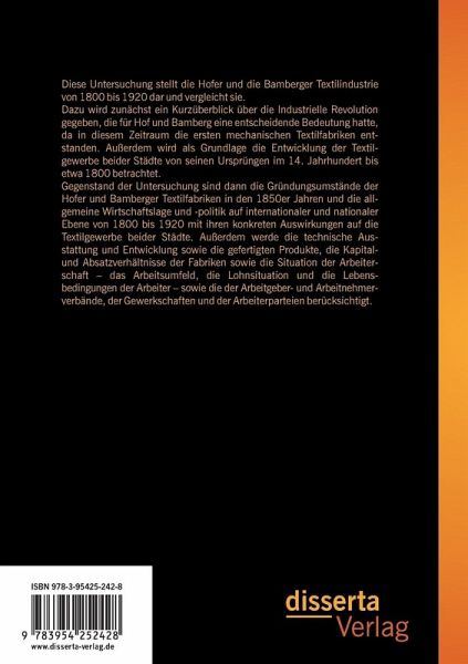 Diese Untersuchung stellt die Hofer und die Bamberger Textilindustrie von 1800 bis 1920 dar und vergleicht sie.