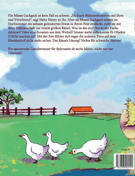 Mit viel Witz und Humor erzählt Antje Tresp-Welte die Geschichte von Misses Gackack, einem Huhn, das es sich zur Aufgabe gemacht hat, das Auftauchen bunter Eier im Hühnerstall aufzuklären - und das dazu noch im Hochsommer. Wer hätte gedacht, dass zu einem Leben auf dem Bauernhof nicht nur eine Hühnerdetektivin gehört, sondern auch ein Hofhund mit medizinischen Kenntnissen und zickige Ziegen? Wobei, letztere dann wohl doch…