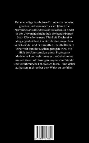 Der ehemalige Psychologe Dr. Atlantian scheint genesen und kann nach vielen Jahren die Nervenheilanstalt Allerseelen verlassen. Er findet in der Universitätsbibliothek der benachbarten Stadt Rhinael eine neue Tätigkeit. Doch seine Vergangenheit holt ihn ein, als eine junge Frau verschwindet und er daraufhin unaufhaltsam in eine Welt dunkler Mythen gezogen wird. Mit Hilfe der Altertumsforscherin Professorin Madeleine Landwehr muss er die Geheimnisse um seltsame Entführungen, mysteriöse Brände und verführerische Fabelwesen lösen - und dabei aufpassen, nicht selbst dem Wahn zu verfallen!