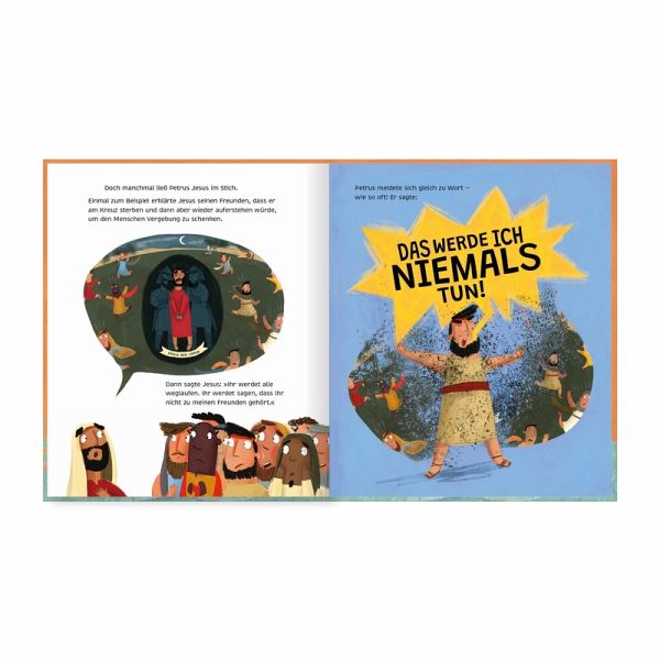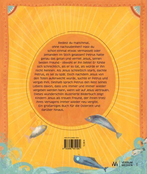 Redest du manchmal, ohne nachzudenken? Hast du schon einmal etwas vermasselt oder jemanden im Stich gelassen? Petrus hatte genau das getan und verriet Jesus, seinen besten Freund - obwohl er ihn liebte! Er fühlte sich schrecklich, als er so tat, als würde er ihn nicht kennen. Als Jesus schließlich starb, dachte Petrus, es sei zu spät. Doch nachdem Jesus von den Toten auferweckt wurde, suchte er Petrus und vergab ihm. Deshalb sprach Petrus den Rest seines Lebens davon, dass uns immer und immer wieder vergeben werden kann, wenn wir auf Jesus vertrauen. Dieses wunderschön illustrierte Bilderbuch zeigt Kindern Jesus als treuen Freund, der ihnen trotz ihres Versagens immer wieder neu vergibt. Ein großartiges Buch für die Osterzeit und darüber hinaus.
