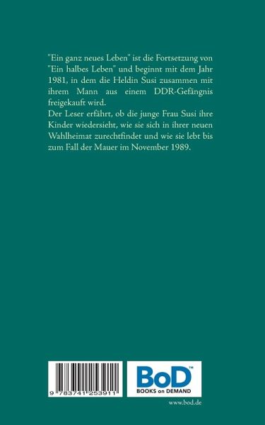 Susi hat aus ihrem alten Leben nur die Kleider, die sie am Körper trägt und einige Erinnerungen, die sie rigoros beiseite schiebt. Und sie hat Manfred, ihren Mann. Mit ihm zusammen will sie die Vergangenheit hinter sich lassen und ein ganz anderes Leben beginnen. "Ein ganz neues Leben" ist die Fortsetzung von "Ein halbes Leben" und beginnt mit dem Jahr 1981, in dem die Heldin Susi zusammen mit ihrem Mann aus einem DDR-Gefängnis freigekauft wird. Der Leser erfährt, ob Susi ihre Kinder wiedersieht, wie sie sich in ihrer neuen Wahlheimat zurechtfindet und wie sie lebt, bis zum Fall der Mauer im November 1989.