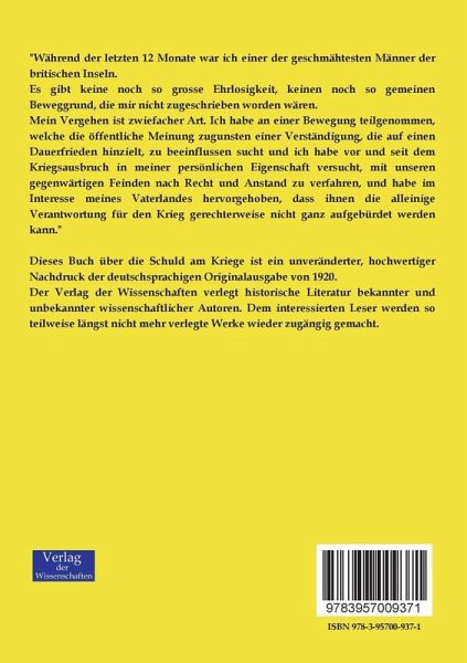 Dieses Buch über die Schuld am Kriege ist ein unveränderter, hochwertiger Nachdruck der deutschsprachigen Originalausgabe von 1920.