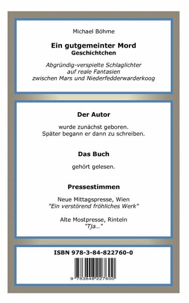 Der Autor wurde zunächst geboren. Später begann er dann zu schreiben. Der Autor erhielt mehrfach den bedeutenden Niederfedderwarderkooger Ehrenpreis für korrekte politische Unkorrektheit "Goldener Neger".