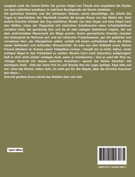 "Ein Kampf um Rom" von Felix Dahn ist ein historischer Roman, der die dramatischen Ereignisse um den Untergang des Ostgotenreichs im 6. Jahrhundert nach Christus schildert. Der Roman beginnt mit einer geheimen Versammlung von gotischen Anführern, die sich der drohenden Gefahr für ihr Reich bewusst sind. Der alternde König Theoderich der Große, einst ein mächtiger Herrscher, ist krank und schwach geworden, und sein Tod scheint nahe. Die Goten stehen vor der Herausforderung, ihr Reich gegen die Bedrohungen von innen und außen zu verteidigen. Die Verschwörung der Römer, angeführt von Cethegus und unterstützt von der Kirche, zielt darauf ab, die Goten zu stürzen und die Herrschaft über Italien zurückzuerlangen. Der Roman beleuchtet die inneren Konflikte und politischen Intrigen sowohl auf gotischer als auch auf römischer Seite. Die Goten, die sich in einem fremden Land als Barbaren fühlen, kämpfen um ihre Identität und ihr Überleben. Der Roman endet mit dem unausweichlichen Untergang der Goten, die trotz ihrer Tapferkeit und ihres Mutes den übermächtigen Feinden nicht standhalten können. Dahn verwebt historische Fakten mit fiktiven Elementen, um ein lebendiges Bild dieser turbulenten Epoche zu zeichnen.