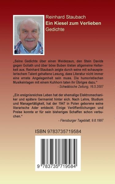 Reinhard Staubach, 1947 in Polen geboren, lebt gegenwärtig in Oberschwaben. Nach dem Besuch der Volksschule absolvierte er eine Handwerkerlehre. Er fuhr zur See und erwarb das Abitur auf dem zweiten Bildungsweg. Anschließend studierte er Germanistik und Erziehungswissenschaft. Während zwei Jahrzehnten Berufstätigkeit im Führungsmanagement, lebte er für kurze Zeit in Frankreich. Neben seinen Büchern publizierte er viele Erzählungen und Kurzgeschichten in Zeitungen und Zeitschriften.