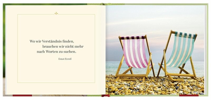 48-seitiges Buch im handlichen FormatTolle Zitate mit schönen NaturfotografienIdeal als Zusatzgeschenk oder Ersatz für eine GrußkarteHochwertiges Cover mit robuster OberflächenveredelungDas Cover ist schmutz- und kratzunempfindlichDas Papier ist der Umwelt zuliebe FSC-zertifiziert