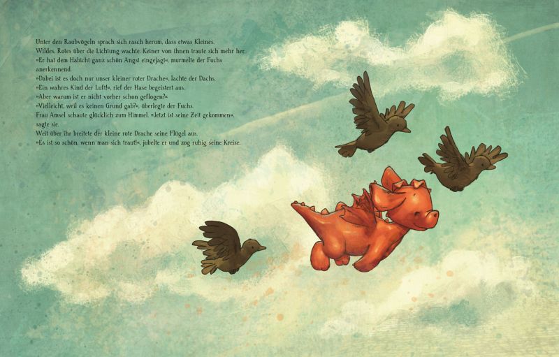 Ein mutmachendes Bilderbuch über Selbstvertrauen und Sich-Zeit-Lassen für Kinder ab 4 Jahren. Der kleine rote Drache schaut sehnsüchtig in den Himmel. Seine Amselgeschwister flattern mittlerweile alle wie die Weltmeister, nur er ist noch zu ängstlich zum Fliegen. Denn: Auch Drachen haben manchmal Angst. Als aber eines Tages niemand da ist, der ihn drängelt, fühlt sich der kleine rote Drache bereit. Er nimmt all seinen Mut zusammen, öffnet die Flügel und traut sich was! Die Fortsetzung zum Erfolgstitel »Ein komischer Vogel - Es ist schön, etwas anders zu sein« - tröstlich und bestärkend für Kinder, die ihre eigene Zeit brauchen.
