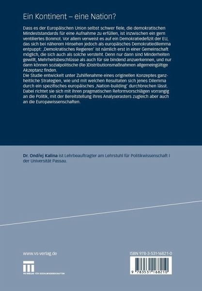 Dass es der Europäischen Union selbst schwer fiele, die demokratischen Mindeststandards für eine Aufnahme zu erfüllen, ist inzwischen ein gern ventiliertes Bonmot. Vor allem verweist es auf ein Demokratiedefizit der EU, das sich bei näherem Hinsehen jedoch als europäisches Demokratiedilemma entpuppt: 'Demokratisches Regieren' ist nämlich erst in einer Gemeinschaft möglich, die sich auch als solche versteht. Denn nur dann sind Minderheiten gewillt, Mehrheitsbeschlüsse als auch für sie bindend anzuerkennen, und nur dann können sozialpolitische (Re-)Distributionsmaßnahmen allgemeingültige Akzeptanz finden. Die Studie entwickelt unter Zuhilfenahme eines originellen Konzeptes ganzheitliche Strategien, wie und mit welchen Resultaten sich jenes Dilemma durch ein spezifisches europäisches 'Nation-building' durchbrechen lässt. Dabei richtet sie sich mit ihren pragmatischen Reformvorschlägen vorrangig an die Politik, mit der Bereitstellung ihres Analyserasters zugleich aber auch an die Europawissenschaften.