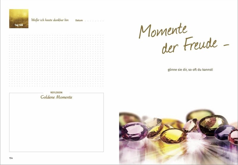 Das Buch der Stunde: Das erste Dankbarkeit-Training, um die eigene Zuversicht zu stärken, resilient und glücklich zu werden.Ein angeleitetes Tagebuch zum Selbst-Ausfüllen vom renommierten Psychotherapeuten Gert Kowarowsky und der bekannten Grafikdesignerin und Pädagogin Christina von Puttkamer. Jeden Abend Rückblick halten. Den Tag in Gedanken noch einmal Revue passieren lassen. Innerlich freudige, schone Beobachtungen und Erfahrungen noch einmal einblenden. Sich auch an die kleinen, manchmal unscheinbaren Ereignisse erinnern, die einen unerwarteten Lichtstrahl in den vermeintlich grauen Alltag brachten - dazu mochte dieses Tagebuch einladen.Wie in einem Kurs lernt man 108 Tage lang, Tag für Tag den Blick auf die positiven Erfahrungen im Leben zu richten - große und bedeutende, aber auch kleine und flüchtige - und so tiefe Dankbarkeit zu entwickeln. Durchs tagliche Aufschreiben werden kraftspendende Erinnerungen gesammelt, die helfen, ein Gegengewicht zu schwierigen Lebenssituationen zu schaffen und die Balance wiederherzustellen. Denn Dankbarkeit ist ein Schlüssel, um mehr Freude, Zufriedenheit und Glück in dein Leben zu bringen. Ein liebevoll gestaltetes und hochwertig verarbeitetes Buch in verdeckter Ringbuchspirale, die das Schreiben und Notieren leichter macht. Ein wunderbarer Begleiter und ein Geschenk an sich selbst und Menschen, die einem am Herzen liegen.