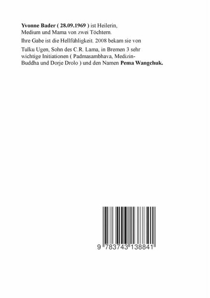 In diesem Band geht es um die Beschreibung eines spirituellen Weges, wie er hier im Westen aussehen kann. Als Heilerin und Medium tätig, lässt uns Yvonne Bader alias Pema Wangchuk an einem Teil ihrer persönlichen Innenansichten teilhaben.Sie ist hellfühlig und eröffnet dem Leser durch die lebendige und fesselnde Darstellung ihrer Erfahrungen Einblicke in bis dato unbekannte innere Welten und Zusammenhänge.