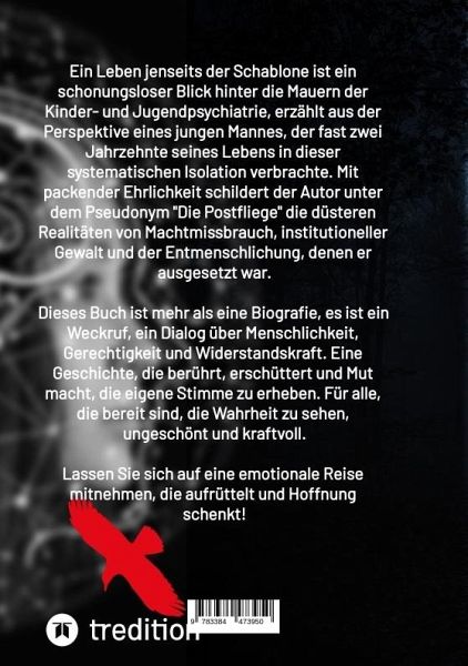 "Eine Geschichte über das unsichtbare Leid, das niemand sehen will".In diesem Buch nehme ich dich mit auf eine Reise durch mein Leben, ein Leben, das geprägt ist von Schmerz, Einsamkeit und einem unscheinbaren Leid, das die meisten Menschen nie bemerkt hätten. Von einer Kindheit voller Vernachlässigung und Isolation bis hin zu den kalten Mauern von Heimen und psychiatrischen Anstalten habe ich erfahren, wie es ist, übersehen zu werden.Es ist eine Geschichte, die zeigt, wie leicht die Gesellschaft Menschen übersieht, deren Schmerz nicht laut ist, deren Schreie nach Hilfe ungehört verhallen. Ich möchte Einblicke geben in das, was hinter verschlossenen Türen geschieht, in die Momente, die niemand wahrnimmt, die sich aber tief in die Seele eingraben.Dieses Buch ist keine leichte Kost. Es ist ehrlich, schmerzhaft und direkt. Es wird dich dazu bringen, über die Kunst nachzudenken, wie wir als Gesellschaft mit den Nächsten umgehen, den Nächsten, die keine Stimme haben, die vergessen werden, bevor sie überhaupt eine Chance hatten.Wenn du bereit bist, dich auf eine wahre Lebensgeschichte einzulassen, die ebenso schwierig wie ehrlich ist, dann lade ich dich ein, dieses Buch zu lesen. Es wird dich berühren, erschüttern und vielleicht dazu führen, dass du die Welt mit anderen Augen siehst. Dieses Buch ist nicht nur meine Geschichte, es könnte die Geschichte von so vielen anderen sein, die übersehen werden.