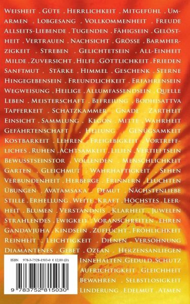 "Ein Lichtermeer" ist wie ein Meer von tausend Lichtern und ein Meer von Licht zugleich. 53 Lehrende spornen all jene, die das Friedenbringen erlernen wollen, dazu an, nach Freiheit zu streben, für sich selbst und für andere. Wie Licht in der Nacht zeigen sie einen Weg, der über Weisheit und Mitgefühl hinausführt, den Weg des allweisen, barmherzigen Hingeneigtseins. Unermüdlich beantworten sie die Fragen, welche Werke und Taten notwendig sind, um ein wahrhaft großes Licht in der Welt entzünden zu können. Sie lehren die Übenden, solch ein Licht zu sein, um allen Wesen, die in Finsternis und Angst leben, hell zu leuchten und den Weg in die Freiheit zu zeigen. Dieses Werk folgt der Weisheit jenes zweitausendjährigen Buches, das unter dem Namen Gandavyuha ("Eintritt in den Kosmos der Wahrheit") Eingang in den Kanon der Avatamsaka- bzw. der Kegon-Schriften gefunden hat. Der Titel des gesamten Kanons lässt sich im deutschen Verständnis in etwa wie folgt beschreiben: "Ein Werk der allweisen Barmherzigkeit, welche reine Lilien zur Ehre des großen, weiten, all-einen Lichts wachsen lässt". Es ist ein Werk, das durch seine leuchtende Kraft hilft, Zeiten der Kargheit und der Dunkelheit zu durchschreiten. In eben solch einer Zeit der inneren wie der äußeren Wüste ist dem Niederschreibenden dieser Schatz der Übertragung in die heutige Sprache anvertraut, verfasst in vollkommener Stille, in einer Höhle, auf einer Insel, dort wo das Leuchten in der Nacht wortwörtlich lebendig ist.