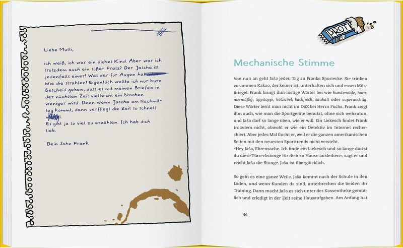 Liegestützen zu machen. Bei ihm bleibt nur hängen, dass er sich „Liekesch“ besorgen soll. Und so gelangt er…mehrDer kleine, aus Bosnien stammende Jaša tut sich schwer, Anschluss in seiner Schulklasse zu finden. Seine Deutschkenntnisse sind trotz Förderunterricht noch zu gering. Kein Wunder also, dass er seine Turnlehrerin nicht wirklich versteht, die ihm zur Kräftigung seiner dünnen Ärmchen empfiehlt, Liegestützen zu machen. Bei ihm bleibt nur hängen, dass er sich „Liekesch“ besorgen soll. Und so gelangt er in den Sportladen des Mittdreißigern Frank. Frank, der vor noch nicht allzu langer Zeit seine Mutter verloren hat und um sie trauert, schreibt dieser regelmäßig Briefe, in denen er der Verstorbenen aus seinem Leben erzählt. Er hat alle mögliche Sportgeräte im Laden, aber was ein Liekesch ist, kann er beim besten Willen nicht herausfinden. Jaša besucht Frank von da an regelmäßig im Laden, bekommt Eiweißshakes und Energieriegel und kann an allen möglichen Geräten trainieren. Im gleichen Ausmaß, wie seine Deutschkenntnisse sich verbessern und seine Muskeln stärker werden, vertieft sich die Freundschaft mit Frank; denn beide brauchen sich gegenseitig. Gleichzeitig werden aber auch Franks Briefe an seine Mama kürzer.
