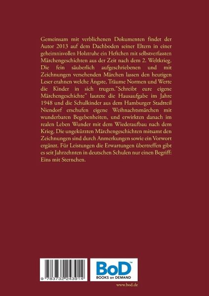 Gemeinsam mit verblichenen Dokumenten findet der Autor 2013 auf dem Dachboden seiner Eltern in einer geheimnisvollen Holztruhe ein Heftchen mit selbstverfassten Märchengeschichten aus der Zeit nach dem 2. Weltkrieg. Die fein säuberlich aufgeschriebenen und mit Zeichnungen versehenden Märchen lassen den heutigen Leser erahnen welche Ängste, Träume Normen und Werte die Kinder in sich trugen."Schreibt eure eigene Märchengeschichte" lautete die Hausaufgabe im Jahre 1948 und die Schulkinder aus dem Hamburger Stadtteil Niendorf erschufen eigene Märchen mit wunderbaren Begebenheiten, und erwirkten danach im realen Leben Wunder mit dem Wiederaufbau nach dem Krieg. Die ungekürzten Märchengeschichten mitsamt den Zeichnungen sind durch Anmerkungen sowie ein Vorwort ergänzt. Für Leistungen, die Erwartungen übertreffen, gibt es seit Jahrzehnten in deutschen Schulen nur einen Begriff: Eins mit Sternchen.