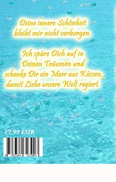 Deine innere Schönheit bleibt mir nicht verborgen.Ich spüre Dich auf in Deinen Träumen und schenke Dir ein Meer aus Küssen, damit Liebe unsere Welt regiert.Mit dem salzigen Duft in der Nase entführe ich Euch auf eine poetische Reise , wo die Wellen von Liebe singen und die Sehnsucht Euren Namen ruft!Die Gedichte versprechen ein Potpourri der Liebe, Tränen der Zeit, Träume und Wünsche und die Suche nach dem Menschen, der den Tag heller, die Sterne schöner und das Leben wundervoll macht.