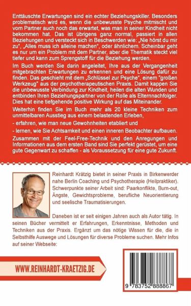 Enttäuschte Erwartungen sind ein echter Beziehungskiller. Besonders problematisch wird es, wenn die unbewusste Psyche mitmischt und vom Partner auch noch das erwartet, was man in der Kindheit nicht bekommen hat. Das ist übrigens ganz normal, passiert in allen Beziehungen und versteckt sich in Beschwerden wie: "Nie hörst du mir zu", "Alles muss ich alleine machen", oder ähnlichem. Scheinbar geht es nur um ein Problem mit dem Partner, aber dahinter steckt mehr und das kann leicht zum Sprengstoff für die Beziehung werden.Die aus der Kindheit mitgebrachten Erwartungen haben mit den damals erfahrenen Mängeln und Lasten zu tun. Sie gefährden nicht nur die Partnerschaft, sondern beeinflussen unmerklich das gesamte Leben und stören auch an vielen anderen Stellen. Deshalb bezeichne ich diesen Komplex gerne als Lebensthema. Im Buch werden Sie darin angeleitet, Ihr eigenes Lebensthema zu erkennen und vor allem erfahren Sie, wie Sie es auflösen, also die damit verbundenen alten Wunden heilenkönnen. Das geschieht mit dem "Schlüssel zur Psyche", einem "großen Werkzeug" aus der psychotherapeutischen Praxis. Damit kappen Sie die unbewusste Verbindung zur Kindheit und entbinden Ihren Beziehungspartner von der Rolle als Elternnachfolger. Dies hat eine tiefgehende positive Wirkung auf das Miteinander und zeigt auch in anderen Lebensbereichen einen guten Niederschlag.- Manches Problem im Miteinander ist sofort vorbei, wenn es den Beteiligten nur gelingt, innerlich zur Ruhe zu finden. Als Hilfsmittel hierfür finden Sie im Buch mehr als 20 kleine Techniken zum unmittelbaren Ausstieg aus einem belastenden Erleben, bzw. aus einem gestressten Zustand.- Jede Veränderung im Leben kann nur aufrecht erhalten werden, wenn aus dem neuen Verhalten Gewohnheiten werden. Deshalb erfahren Sie im Buch auch, wie man neue Gewohnheiten etabliert.- Ohne hinreichende Achtsamkeit nutzen einem alles Wissen und auch alle Fähigkeiten zur Selbststeuerung überhaupt nichts. Die Aufgabe besteht darin, rechtzeitig zu registrieren, dass etwas gerade in Schieflage gerät und möglichst sofort und effektiv zu reagieren. Deshalb gibt es auch einen Abschnitt, in dem Sie lernen, wie Sie Achtsamkeit und einen inneren Beobachter aufbauen.Das Buch ergänzt und erweitert den vor einigen Monaten erschienenen ersten Band. Zusammen mit der Feel-Free-Technik und den Anregungen und Informationen daraus sind Sie perfekt gerüstet, um eine gute Gegenwart zu schaffen - als Voraussetzung für eine gute Zukunft.