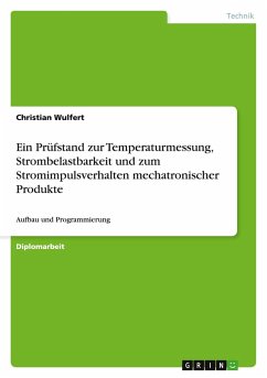 Diplomarbeit aus dem Jahr 2011 im Fachbereich Elektrotechnik, Note: 1,0, Hochschule Bochum, Veranstaltung: Mechatronik, Sprache: Deutsch, Abstract: Konstruktion, Aufbau und Programmierung eines Prüfstandes für die halbautomatische Prüfung der Strombelastbarkeit von Komponenten mechatronischer Produkte nach DIN EN 60612 -5-1 (Temperaturerhöhung), DIN EN 60512 -5-2 (Strombelastbarkeit [mit Derating-Kurve]) und deren Stromimpulsverhalten
