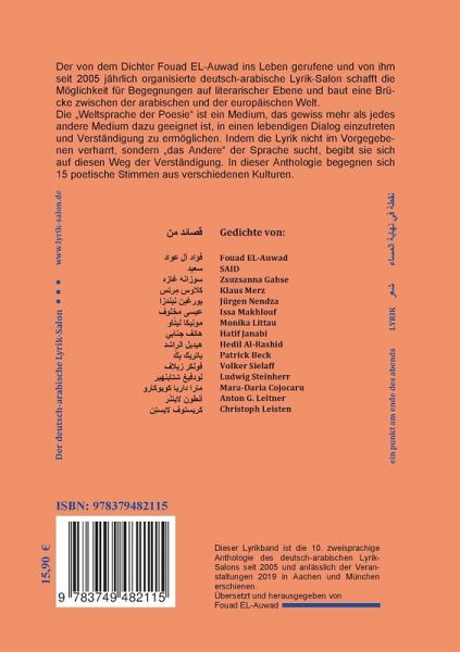 Der von dem Dichter Fouad EL-Auwad ins Leben gerufene und von ihm seit 2005 jährlich organisierte deutsch-arabische Lyrik-Salon schafft die Möglichkeit für Begegnungen auf literarischer Ebene und baut eine Brücke zwischen der arabischen und der europäischen Welt.
