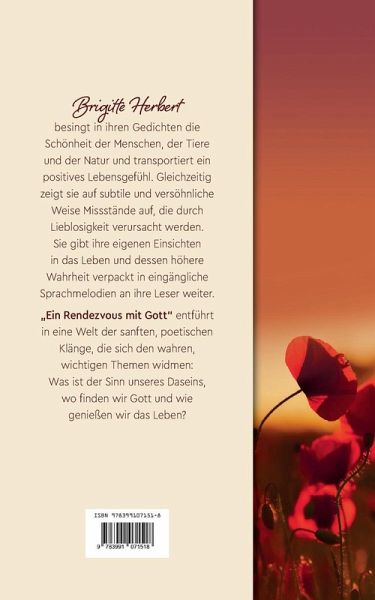 Brigitte Herbert besingt in ihren Gedichten die Schönheit der Menschen, der Tiere und der Natur und transportiert ein positives Lebensgefühl. Gleichzeitig zeigt sie auf subtile und versöhnliche Weise Missstände auf, die durch Lieblosigkeit verursacht werden. Sie gibt ihre eigenen Einsichten in das Leben und dessen höhere Wahrheit verpackt in eingängliche Sprachmelodien an ihre Leser weiter. "Ein Rendezvous mit Gott" entführt in eine Welt der sanften, poetischen Klänge, die sich den wahren, wichtigen Themen widmen: Was ist der Sinn unseres Daseins, wo finden wir Gott und wie genießen wir das Leben?