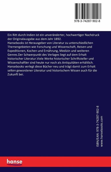 Ein Ritt durch Indien ist ein unveränderter, hochwertiger Nachdruck der Originalausgabe aus dem Jahr 1892.
