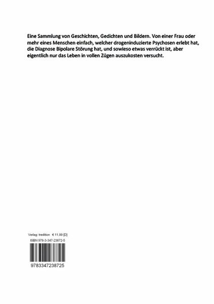 Eine Sammlung von Geschichten, Gedichten und Bildern. Von einer Frau oder mehr eines Menschen einfach, welcher drogeninduzierte Psychosen erlebt hat, die Diagnose Bipolare Störung hat, und sowieso etwas verrückt ist, aber eigentlich nur das Leben in vollen Zügen auszukosten versucht.