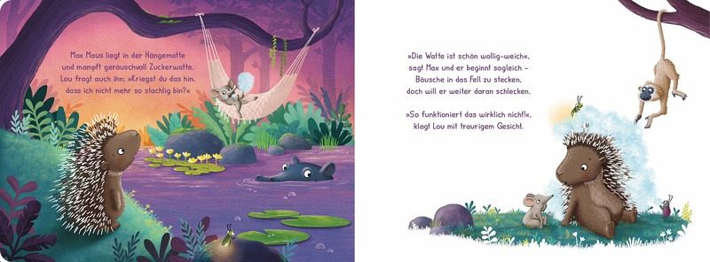 Besonders schön finde ich Lous Vertrauen in ihre Freunde. Sie vertraut auf ihre Mithilfe und probiert mit Eifer deren vielseitige Ideen aus, um kuscheligere Stacheln zu bekommen. Doch leider kann das alles nicht klappen, das wird Kindern schnell klar und sorgt für heitere Vorlesemomente.