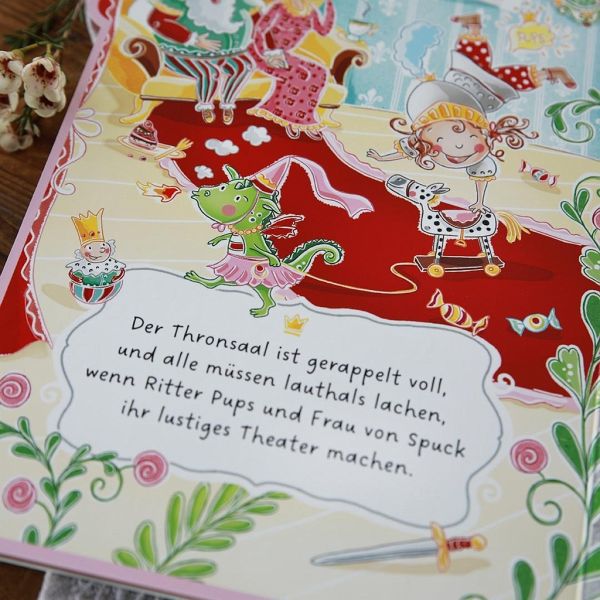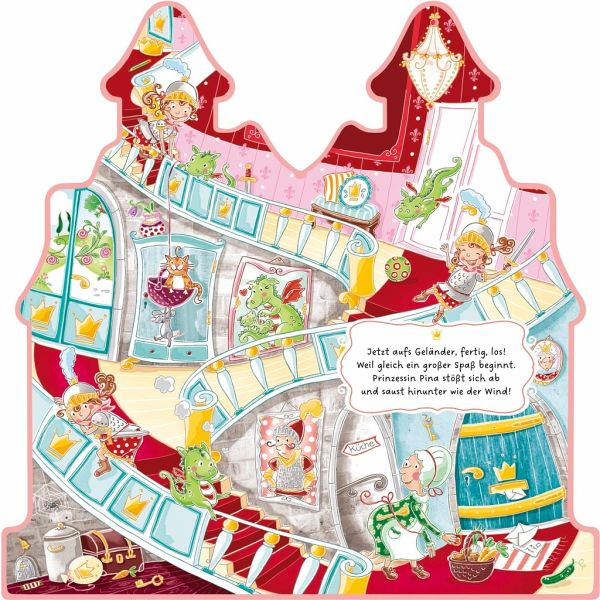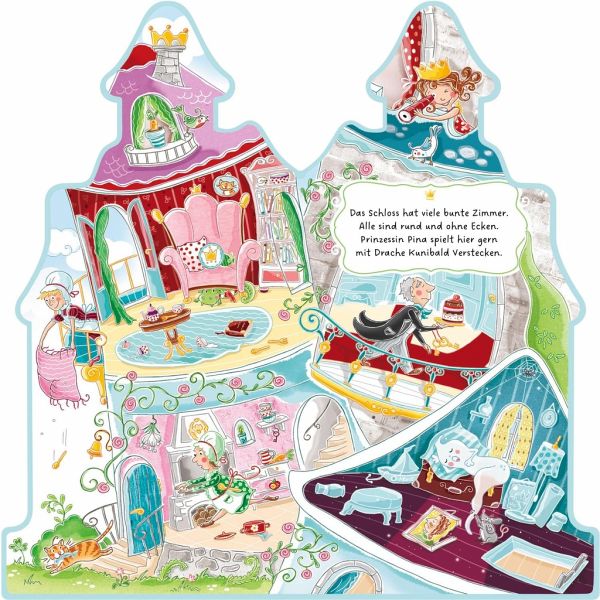 Prinzessin Pina ist eine wilde Prinzessin, so viel steht fest. Zusammen mit ihrem besten Freund, dem frechen Drachen Kunibald, erlebt sie jeden Tag die tollsten Abenteuer im großen Ritterschloss. Was könnte schöner sein als ein Frühstück im Bett mit köstlichem Drachenfeuertoast, mit Schwung die Treppen runterzurutschen und einen gemeinsamen Ausritt zu unternehmen? Na klar, ein selbst ausgedachtes Theaterstück aufführen. Im Handumdrehen macht Pina die Ritterrüstung zu ihrem Kostüm und befreit ihr grünes Burgfräulein mithilfe ihrer ganz und gar nicht prinzessinnenhaften Ritterpupse.