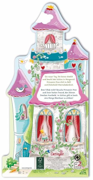 Formgestanztes Pappbilderbuch im Riesenformat - ein echter Hingucker in jedem Kinderzimmer. Mit der frechen Prinzessin Pina und ihrem Begleiter Drache Kunibald wird dir bestimmt niemals langweilig. Erlebe mit ihr einen lustigen und aufregenden Tag im Schloss! Pina ist eine pupsende, wilde Anti-Prinzessin, die einfach jedes Kind begeistert. Liebevolle, einprägsame Reime von Susanne Lütje und die Illustrationen von Miriam Koch machen das Vorlesen zum Vergnügen.
