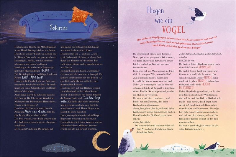Ob fliegende Abenteuer durch den sternenklaren Nachthimmel, Schatzsuchen am Strand, Begegnungen mit sprechenden Tieren oder Ausflüge in ferne Galaxien - die kurzen Geschichten sind so vielfältig wie die Träume selbst. Kinder können als Superhelden die Welt retten, mit Zauberstäben Magie versprühen oder in geheimen Gärten verborgene Schätze entdecken. Das Traumglossar lädt dazu ein, gezielt Geschichten auszuwählen, die genau zur Stimmung des Abends passen. "Ein Traum für jede Nacht" ist eine Einladung, den Tag entspannt ausklingen zu lassen und mit wundervollen Geschichten ins Reich der Träume zu gleiten.