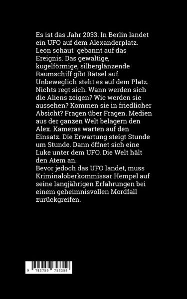 Es ist das Jahr 2033. In Berlin landet ein UFO auf dem Alexanderplatz. Leon schaut gebannt auf das Ereignis. Das gewaltige, kugelförmige, silberglänzende Raumschiff gibt Rätsel auf. Unbeweglich steht es auf dem Platz. Nichts regt sich. Wann werden sich die Aliens zeigen? Wie werden sie aussehen? Kommen sie in friedlicher Absicht? Fragen über Fragen. Medien aus der ganzen Welt belagern den Alex. Kameras warten auf den Einsatz. Die Erwartung steigt Stunde um Stunde. Dann öffnet sich eine Luke unter dem UFO. Die Welt hält den Atem an. Bevor jedoch das Ufo landet, muss Kriminaloberkommissar Hempel auf seine langjährigen Erfahrungen bei einem geheimnisvollen Mordfall zurückgreifen.