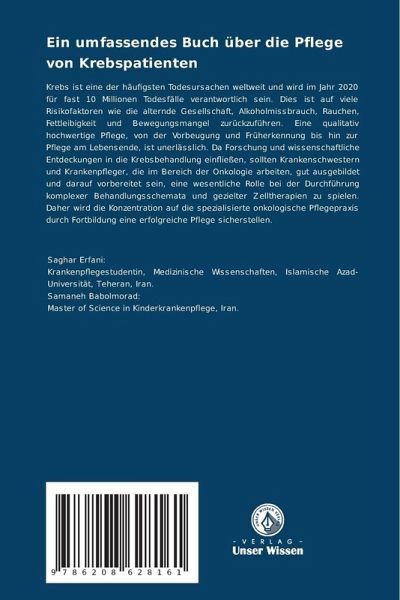Krebs ist eine der häufigsten Todesursachen weltweit und wird im Jahr 2020 für fast 10 Millionen Todesfälle verantwortlich sein. Dies ist auf viele Risikofaktoren wie die alternde Gesellschaft, Alkoholmissbrauch, Rauchen, Fettleibigkeit und Bewegungsmangel zurückzuführen. Eine qualitativ hochwertige Pflege, von der Vorbeugung und Früherkennung bis hin zur Pflege am Lebensende, ist unerlässlich. Da Forschung und wissenschaftliche Entdeckungen in die Krebsbehandlung einfließen, sollten Krankenschwestern und Krankenpfleger, die im Bereich der Onkologie arbeiten, gut ausgebildet und darauf vorbereitet sein, eine wesentliche Rolle bei der Durchführung komplexer Behandlungsschemata und gezielter Zelltherapien zu spielen. Daher wird die Konzentration auf die spezialisierte onkologische Pflegepraxis durch Fortbildung eine erfolgreiche Pflege sicherstellen.