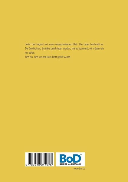 Jeder Text beginnt mit einem unbeschriebenem Blatt. Das Leben beschreibt es. Die Geschichten, die dabei geschrieben werden, sind so spannend, wir müssen sie nur sehen. Sieh hin. Sieh wie das leere Blatt gefüllt wurde.