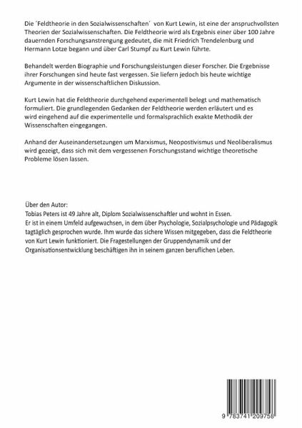 Die "Feldtheorie in den Sozialwissenschaften" von Kurt Lewin, ist eine der anspruchsvollsten Theorien der Sozialwissenschaften. Die Feldtheorie wird als Ergebnis einer über 100jährigen Forschungsanstrengung gedeutet, die mit Friedrich Trendelenburg und Hermann Lotze begann und über Carl Stumpf zu Kurt Lewin führte.Behandelt werden Biographie und Forschungsleistungen dieser Forscher. Die Ergebnisse ihrer Forschungen sind heute fast vergessen. Sie liefern jedoch bis heute wichtige Argumente in der wissenschaftlichen Diskussion.Kurt Lewin hat die Feldtheorie durchgehend experimentell belegt und mathematisch formuliert. Die grundlegenden Gedanken der Feldtheorie werden erläutert und es wird eingehend auf die experimentelle und formalsprachlich exakte Methodik der Wissenschaften eingegangen. Anhand der Auseinandersetzungen um Marxismus, Neopositivismus und Neoliberalismus wird gezeigt, dass sich mit dem vergessenen Forschungsstand wichtige theoretische Probleme lösen lassen.