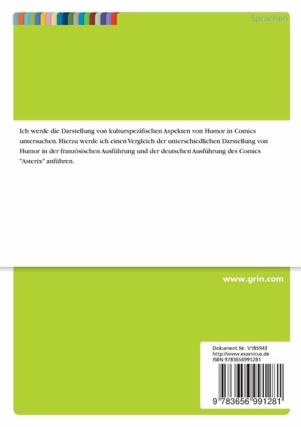Studienarbeit aus dem Jahr 1998 im Fachbereich Romanistik - Französisch - Linguistik, Note: 0, Universität Hamburg, Sprache: Deutsch, Abstract: Ich werde die Darstellung von kulturspezifischen Aspekten von Humor in Comics untersuchen. Hierzu werde ich einen Vergleich der unterschiedlichen Darstellung von Humor in der französischen Ausführung und der deutschen Ausführung des Comics "Asterix" anführen.