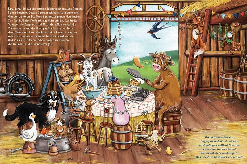 Die Geschichte regt zum Nachdenken an und zeigt, dass besser jeder das machen sollte, was er gut kann und wofür er geschaffen ist. Hühner die Milch geben und Ziegen, die Eier legen, das funktioniert nun mal nicht, lustig ist es aber trotzdem und dadurch sorgt das Buch für gute Laune und fröhliche Unterhaltung. Zudem kommt man so auch mit den kleinsten ins Gespräch und das Thema der Potenzialentfaltung wird auf niedliche Art und Weise integriert und angesprochen.