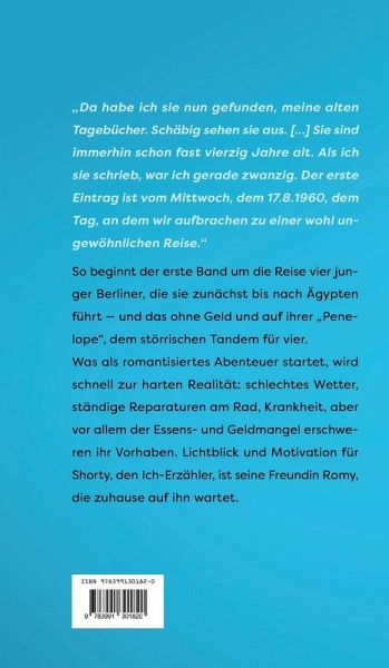 "Da habe ich sie nun gefunden, meine alten Tagebücher. Schäbig sehen sie aus. [...] Sie sind immerhin schon fast vierzig Jahre alt. Als ich sie schrieb, war ich gerade zwanzig. Der erste Eintrag ist vom Mittwoch, dem 17.8.1960, dem Tag, an dem wir aufbrachen zu einer wohl ungewöhnlichen Reise."So beginnt der erste Band um die Reise vier junger Berliner, die sie zunächst bis nach Ägypten führt - und das ohne Geld und auf ihrer "Penelope", dem störrischen Tandem für vier. Was als romantisiertes Abenteuer startet, wird schnell zur harten Realität: schlechtes Wetter, ständige Reparaturen am Rad, Krankheit, aber vor allem der Essens- und Geldmangel erschweren ihr Vorhaben. Lichtblick und Motivation für Shorty, den Ich-Erzähler, ist seine Freundin Romy, die zuhause auf ihn wartet.