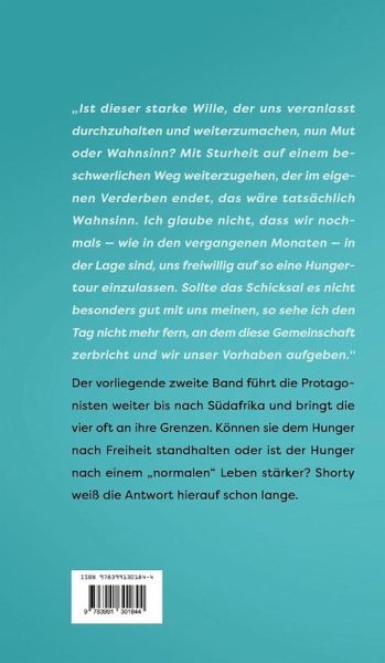 "Ist dieser starke Wille, der uns veranlasst durchzuhalten und weiterzumachen, nun Mut oder Wahnsinn? Mit Sturheit auf einem beschwerlichen Weg weiterzugehen, der im eigenen Verderben endet, das wäre tatsächlich Wahnsinn. Ich glaube nicht, dass wir nochmals - wie in den vergangenen Monaten - in der Lage sind, uns freiwillig auf so eine Hungertour einzulassen. Sollte das Schicksal es nicht besonders gut mit uns meinen, so sehe ich den Tag nicht mehr fern, an dem diese Gemeinschaft zerbricht und wir unser Vorhaben aufgeben."Der vorliegende zweite Band führt die Protagonisten weiter bis nach Südafrika und bringt die vier oft an ihre Grenzen. Können sie dem Hunger nach Freiheit standhalten oder ist der Hunger nach einem "normalen" Leben stärker? Shorty weiß die Antwort hierauf schon lange.