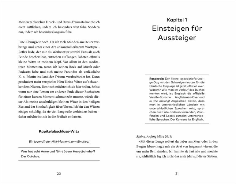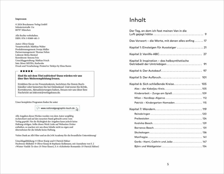 »Mit deiner Lunge solltest du besser am Meer oder in den Bergen wohnen.« Das sind die Worte, mit denen Olis Arzt ihn nach seiner dritten Lungen-OP aus dem Krankenhaus entlässt. Kurz darauf fasst er den radikalen Entschluss, sein altes Leben hinter sich zu lassen: Er gibt seine Wohnung auf. Ab diesem Moment fährt er als Vollzeit-Vanlifer und freiberuflicher Werbetexter quer durch Europa. Zwischen frostigen minus 30° C und sengender Hitze verliebt er sich in Freiheit, Einsamkeit, Nordlichter und eine junge Frau, die sogar spontan einzieht. Außerdem lernt er portugiesische Rowdy-Störche und die versöhnliche Wirkung von französischem Rottweilersabber kennen. Nach gut fünf Jahren kann er das behaupten, was sein Kennzeichen verspricht: »BIN OK«!