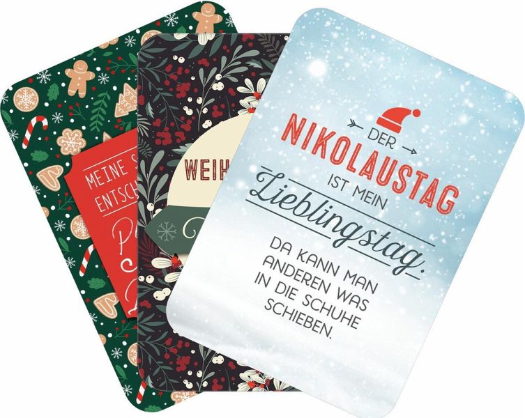 Mit einer großen Portion Sarkasmus durch die Vorweihnachtszeit: Böse und ironische Sprüche auf cool gestalteten Kärtchen für einen lustigen Start in den TagEin originelles Geschenk: Der ideale Adventskalender für Weihnachtsmuffel und Fans von schwarzem HumorSchön und hochwertig: 24 trendig gestaltete Kärtchen in einer praktischen und stabilen KartenboxFür dein Ritual im Advent: Ziehejeden Tag ein Kärtchen und mach den Spruch zu deinem Tagesmotto