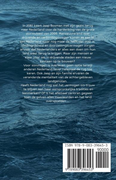 Kunnen mensen overleven als de zeespiegel wereldwijd zo hoog is gestegen dat de zee de overhand heeft gekregen? Is een land dat half onder water is komen te staan nog geschikt om in te leven. In 2081 keert Jaap Bosman met zijn gezin terug naar Nederland voor de herdenking van de grote stormvloed van 2066. Manoeuvrerend over drijvende en verbindingswegen komen ze aan in een Nederland waar nog maar de helft van over is. Vindingrijkheid en doorzettingsvermogen zorgen ervoor dat Nederlanders er alles aan doen om hun land weer terug te krijgen. Maar zijn mensen er klaar voor om in drijvende steden een nieuw bestaan op te bouwen? Voor sommigen is overleven geen optie terwijl anderen Nederland liever helemaal de rug toe keren. Ook Jaap en zijn familie ervaren de veranderde mentaliteit van de achtergebleven landgenoten. Heeft Nederland nog wel het vermogen om trouw te blijven aan haar oorspronkelijke tradities en kenmerken? Of is het allemaal verloren gegaan toen de golven alles meesleurden en het land overspoelden ...