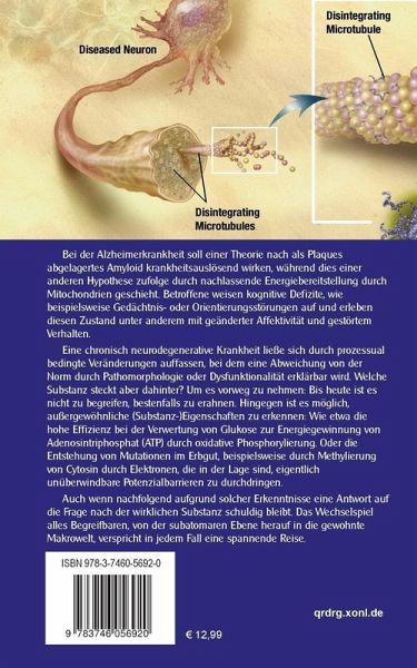 Bei der Alzheimerkrankheit soll einer Theorie nach als Plaques abgelagertes Amyloid krankheitsauslösend wirken, während dies einer anderen Hypothese zufolge durch nachlassende Energiebereitstellung durch Mitochondrien geschieht. Betroffene weisen kognitive Defizite, wie beispielsweise Gedächtnis- oder Orientierungsstörungen auf und erleben diesen Zustand unter anderem mit geänderter Affektivität und gestörtem Verhalten.Eine chronisch neurodegenerative Krankheit ließe sich durch prozessual bedingte Veränderungen auffassen, bei dem eine Abweichung von der Norm durch Pathomorphologie oder Dysfunktionalität erklärbar wird. Welche Substanz steckt aber dahinter? Um es vorweg zu nehmen: Bis heute ist es nicht zu begreifen, bestenfalls zu erahnen. Hingegen ist es möglich, außergewöhnliche (Substanz-)Eigenschaften zu erkennen: Wie etwa die hohe Effizienz bei der Verwertung von Glukose zur Energiegewinnung von Adenosintriphosphat (ATP) durch oxidative Phosphorylierung. Oder die Entstehung von Mutationen im Erbgut, beispielsweise durch Methylierung von Cytosin durch Elektronen, die in der Lage sind, eigentlich unüberwindbare Potenzialbarrieren zu durchdringen.Auch wenn nachfolgend aufgrund solcher Erkenntnisse eine Antwort auf die Frage nach der wirklichen Substanz schuldig bleibt. Das Wechselspiel alles Begreifbaren, von der subatomaren Ebene herauf in die gewohnte Makrowelt, verspricht in jedem Fall eine spannende Reise.