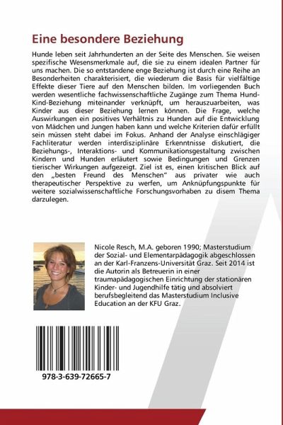 Hunde leben seit Jahrhunderten an der Seite des Menschen. Sie weisen spezifische Wesensmerkmale auf, die sie zu einem idealen Partner für uns machen. Die so entstandene enge Beziehung ist durch eine Reihe an Besonderheiten charakterisiert, die wiederum die Basis für vielfältige Effekte dieser Tiere auf den Menschen bilden. Im vorliegenden Buch werden wesentliche fachwissenschaftliche Zugänge zum Thema Hund-Kind-Beziehung miteinander verknüpft, um herauszuarbeiten, was Kinder aus dieser Beziehung lernen können. Die Frage, welche Auswirkungen ein positives Verhältnis zu Hunden auf die Entwicklung von Mädchen und Jungen haben kann und welche Kriterien dafür erfüllt sein müssen steht dabei im Fokus. Anhand der Analyse einschlägiger Fachliteratur werden interdisziplinäre Erkenntnisse diskutiert, die Beziehungs-, Interaktions- und Kommunikationsgestaltung zwischen Kindern und Hunden erläutert sowie Bedingungen und Grenzen tierischer Wirkungen aufgezeigt. Ziel ist es, einen kritischen Blick auf den "besten Freund des Menschen" aus privater wie auch therapeutischer Perspektive zu werfen, um Anknüpfungspunkte für weitere sozialwissenschaftliche Forschungsvorhaben zu disem Thema darzulegen.
