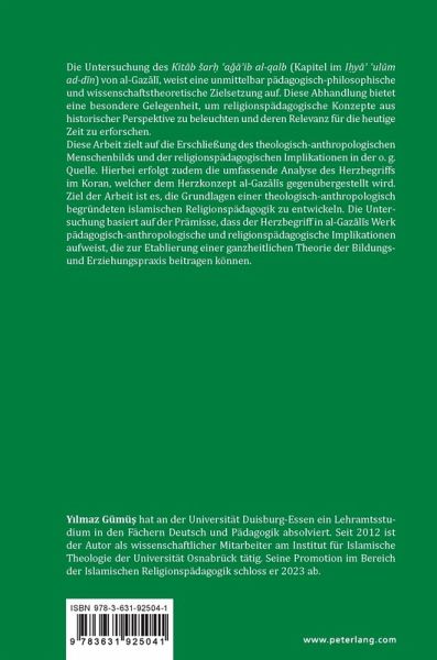 Die Untersuchung des Kitab sarh a a ib al-qalb (Kapitel im Ihya ulum ad-din) von al-Gazali, weist eine unmittelbar pädagogisch-philosophische und wissenschaftstheoretische Zielsetzung auf. Diese Abhandlung bietet eine besondere Gelegenheit, um religionspädagogische Konzepte aus historischer Perspektive zu beleuchten und deren Relevanz für die heutige Zeit zu erforschen.