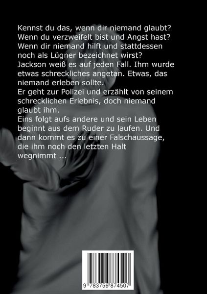 Kennst du das, wenn dir niemand glaubt? Wenn du verzweifelt bist und Angst hast? Wenn dir niemand hilft und stattdessen noch als Lügner bezeichnet wirst?Jackson weiß es auf jeden Fall. Ihm wurde etwas schreckliches angetan. Etwas, das niemand erleben sollte.Er geht zur Polizei und erzählt von seinem schrecklichen Erlebnis, doch niemand glaubt ihm.Eins folgt aufs andere und sein Leben beginnt aus dem Ruder zu laufen. Und dann kommt es zu einer Falschaussage, die ihm noch den letzten Halt wegnimmt ...